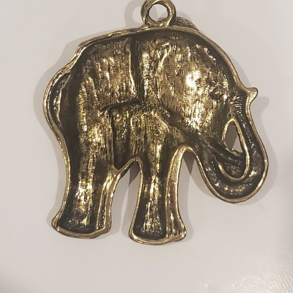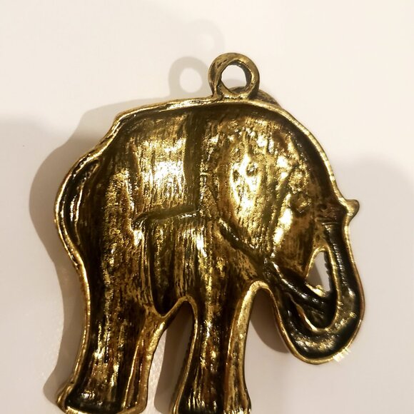 STUNNING Elegant Bronzetone Large Elephant Pendant Faceted Tangerine Rhinestones