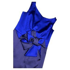 STUNNING Karen Millen Shiny Blue Sleeveless Formal Cute Glam Mini Dress Size 8