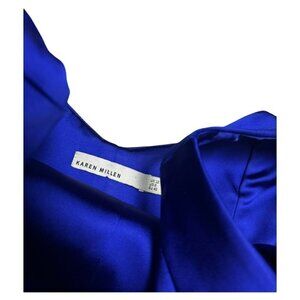 Capture attention with this stunning Karen Millen Shiny Blue Sleeveless Mini Dress in a size 8. Perfect for various occasions including travel, weddings, parties, or even formal events. The dress features a solid pattern, strapless sleeve type, and a zip closure for easy wear.
