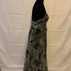 This is one of those pieces I’ll regret selling but it no longer fits ! Floor length maxi black and white paisley print wrap tie waist