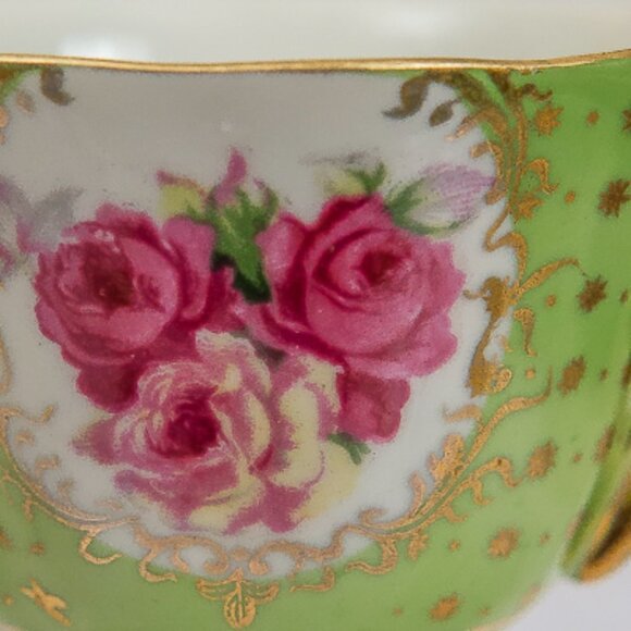Hard to find green and gold combo. Would looks amazing as a succulent planter or for use as intended.