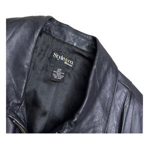 STYLE & CO LEATHER Vintage Casual Y2K Black Designer Jacket