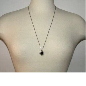 The box chain is approximately 23 in. ( 58 cm) in length, and the pendant is approximately 0.7 in. (18 mm) in diameter.