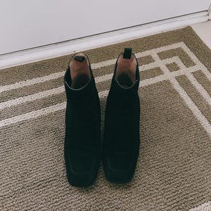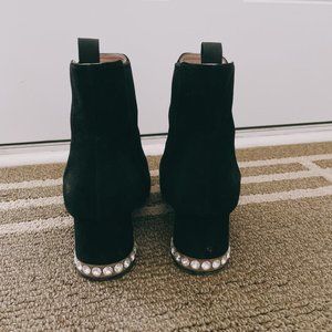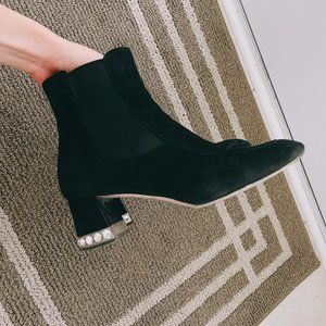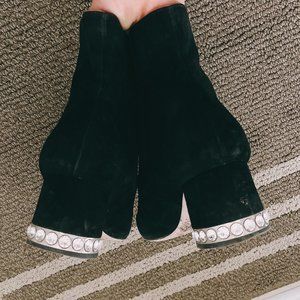 SUDED LEATHER MIUMIU BOOTS, WITH CRYSTAL