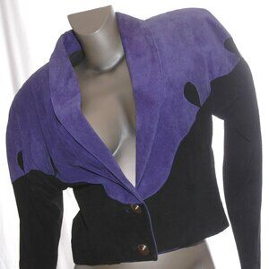 SUEDE Cropped JACKET Leather Coat Vintage 80s 90s MASSIMO Purple Black