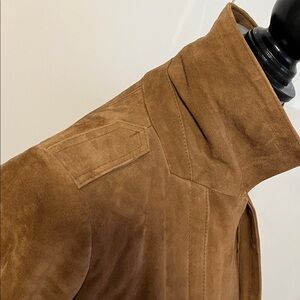 Stylish 100% leather suede trench coat in a dark tan Brown color with a belted waist, side pockets, lapel style collar and fully lined. Created with all the trench coat features, top and back vents and a back slit. This gorgeous rich color can be styled with any colors and neutrals. This is a dark chocolate caramel color. Features a classic design for versatile wear. I LOVE this coat but it doesn't fit me. It's in new condition. I was always afraid to wear it 🤣 in our Canadian weather. Someone else can love this and get use out of it. It's so ON TREND right now 🤎
