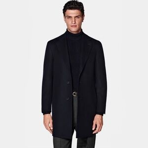 SUITSUPPLY Pure Wool Navy Overcoat Vicenza Int J4611 USA 38 Free CANALI Silk Tie