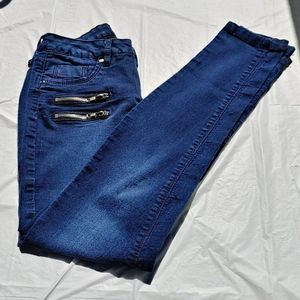 Dark blue Suko Jeans 3 zipper accents in front and they have a tummy tucker