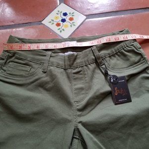 SUKO Mid Rise Pull On Stretch Green Denim Capris