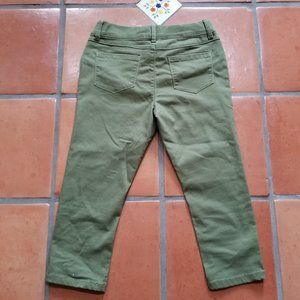 SUKO Mid Rise Pull On Stretch Green Denim Capris. Faux pockets in front. Two real pockets in back. Size 8. Inseam 21 inches. NWOT