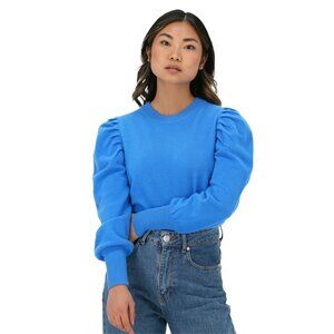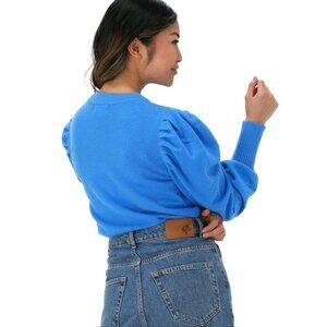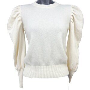 SUNCOO SÉRIES Cream Crewneck Wool Puff Sleeves Ribbed Waist & Cuff Spring Pull S