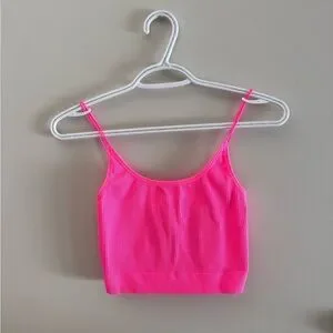 Bright pink ribbed crop top with spaghetti straps
