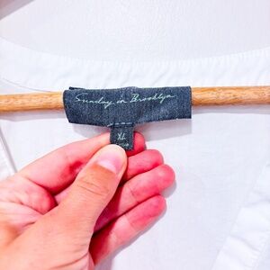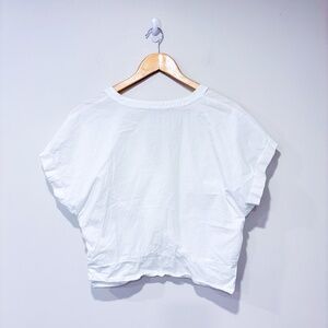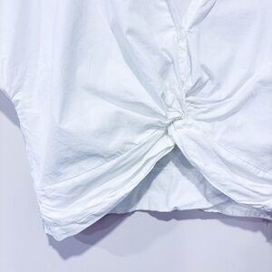 This white cropped blouse from Sunday in Brooklyn combines casual comfort with a chic twist. Designed in soft cotton with a flattering front knot and relaxed fit, perfect for effortless summer styling. In good condition and easy to pair with jeans or high-waisted skirts for a fresh, modern look.