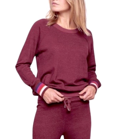 SUNDRY BURGUNDY STRIPED CUFF SWEATER