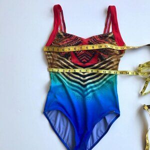 SUNFLAIR Bathing Suit & Dress/Skirt/Cover Up, 2 pces red blue gold brown 8/10 D
