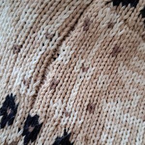 N.B.; THE SEWING (photos 5 & 6) BETWEEN EACH SLEEVE AND THE BODY OF THE CARDIGAN IS MORE OR LESS APPARENT BUT IT SEEMS TO BE A PARTICULARITY OF THE DESIGN AND NOT A DEFECT.