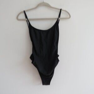 SUNNY CO Pamela One Piece Plunge Back Swimsuit in Black Stretch - Size S