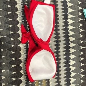 Sunsets. Strapless bikini top. Red. Padded. Ties at back. Adjustable. Medium.