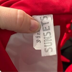 SUNSETS. Strapless bikini top. Red. Padded. Ties at back. Adjustable. Medium.