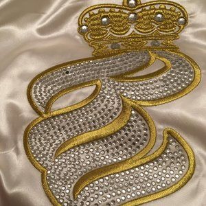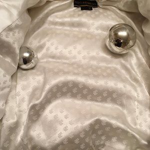 this is such a rare find i couldnt find anouther online anywhere especially brand new with tags its been carefully stored for 20 yrs ! the iconic y2k satin puffer jacket with genuine fox fur hood trim and pom poms,logo zipper tabs ,crystal and gold embroidery logo on arm front and back,gorgeous lining down filled with real feathers this jacket is so lux and warm! has original price tag from 20 yrs ago and if you know y2k vintage you know its worth alot more especially new with tags on.ask me any questions and check my closet for more y2k treasures and a dereon jacket simular to this one.! tag says size large but can fit smaller too looks great on the size small mannequin i saw from the pics after one stone is missing i found it and it will be properly replaced before shipping!( i work with crystals everyday !