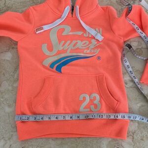 In excellent preowned condition limited edition 80’s retro style SUPERDRY neon pink hoodie.