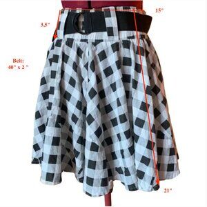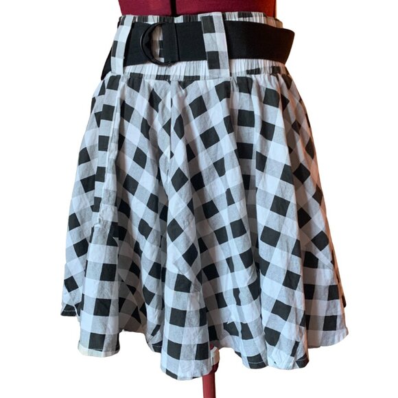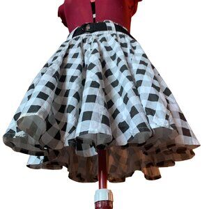 SUPREME BEING - Full Circle Skirt black and white plaid - Elastic Waist - small