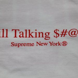 The tee consists of a text print on the front chest, which says: "Still Talking S#@*", along with a "Supreme Platinum Records" text printed directly below, all in in yellow.