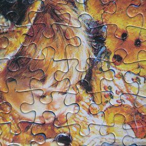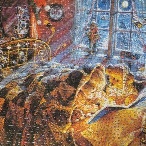 UNDER THE COVERS BY STEWART SHERWOOD - Whimsical picture of young boy, his puppy and teddy bear reading under the bedcovers - Puzzle in bag