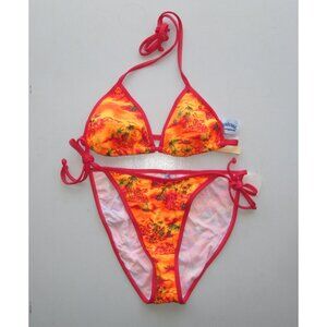 SURFSIDE Tropical Print High Cut Leg String Bikini - Sz L - NEW