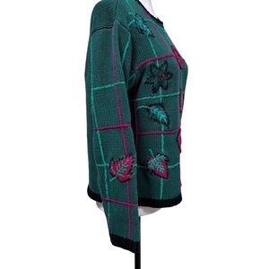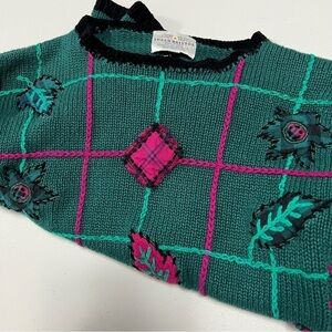 Windowpane style with patches of leaves & squares sewn in. Ramie / Cotton / Acrylic. Vintage piece. Few minor snags at the lower back as pictured.