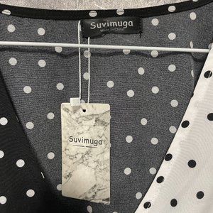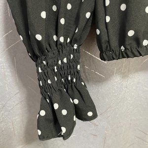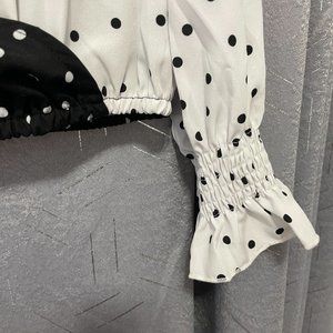 SUVIMUGA Black & White Polka Dot Asymmetrical Blouse with Ruched Sleeves - O/S