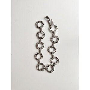 SUZI ROHER Silver Tone Metallic Leather Chain Link Belt, One Size