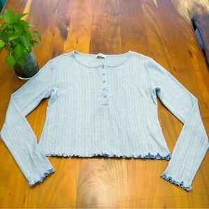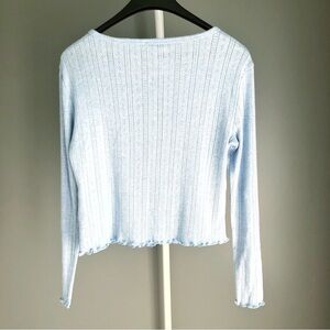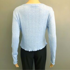 SUZY Pastel Blue Casual Relaxed Fit Button Down Long Sleeves Knits Sweater T Shirt Tee