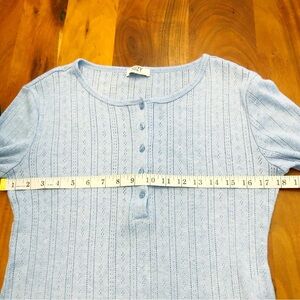 SUZY Pastel Blue Casual Relaxed Fit Button Down Long Sleeves Knits T Shirt Tee