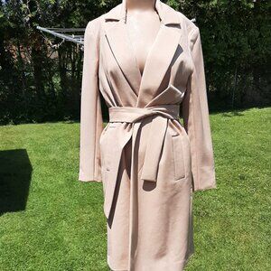 New without tags, light tan knee-length folder lapel blazer-style city-chic fall trench coat!