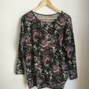 SUZY SHIER Dark Floral Oversized Casual Knitted Sweater Size Extra-Small
