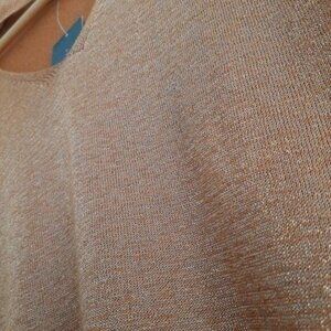 SUZY SHIER / NEW Sparkly Lurex V-neck Fine Knit Sweater Golden Warm Tan Sz L