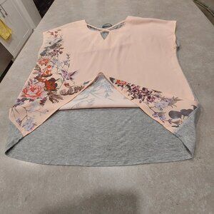 SUZY SHIER Pink Front w/Floral Print & Criss Cross on Chest Grey Knit Back - LGE
