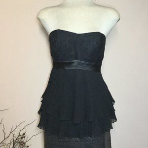 SUZY Shier Black Strapless ruffle Lace and chiffon top Size XS