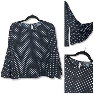 Suzy Shier Black & White Polkadot Boxy Bellsleeve Blouse