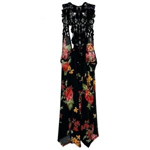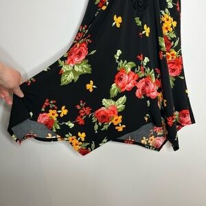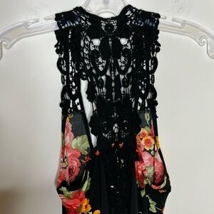 SUZY Shier Floral Crochet Back Tunic Shirt Asymmetrical Handkerchief Hem