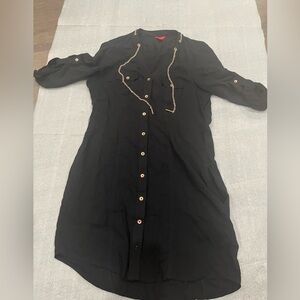 [S]VTG Guess Black Button-Up Shirt Tunic Dress with Gold Chain