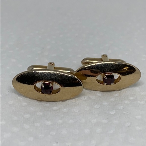 Classic gold tone oval cufflinks with red stone. 70s madmen style MCM 1” across