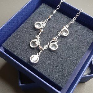 Simple and beautiful, this Crystal Drop Necklace is the perfect accessory for an understated elegant look. Made with clear Swarovski crystals and rhodium-plated hardware. Features a lobster claw clasp closure.