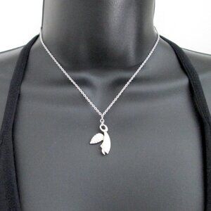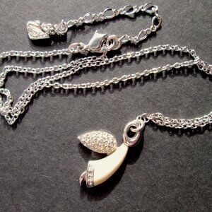 ✨ SWAROVSKI Swan Mark Angel Pendant Necklace Rhodium Plated Cream Enamel