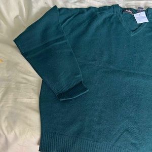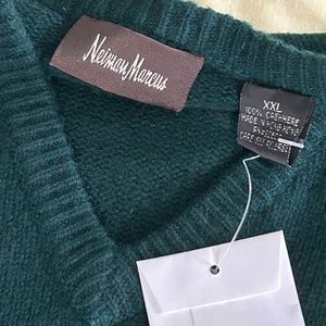 SWEATER, CASHMERE 100%, SIZE 2XL, GREEN, V- NECK, SHORT SLEEVES, NEIMAN MARCUS, TAGS ON NEVER WORN, CAREFULLY STORED, NO DAMAGE