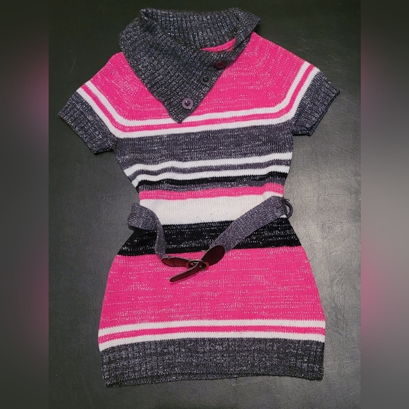 SWEATER DRESS KNITTED SIZE 5/6 PINK/BLK/GRAY