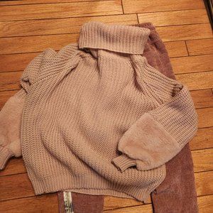 Large knit w/ cowl neck Fur cuffs; please don't wipe your nose on them! Comfy, Cozy & Cool Excellent condition