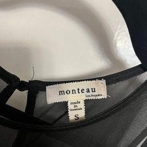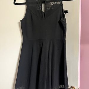 SWEETHEART RUFFLE NECKLINE MONTEAU SMALL BLACK DRESS FLOWY MESH LINING OPEN BACK