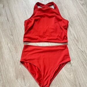 SWIMSUIT 2 PIECE SIZE XL ORANGE RIBBED WOMEN SWIMSUIT